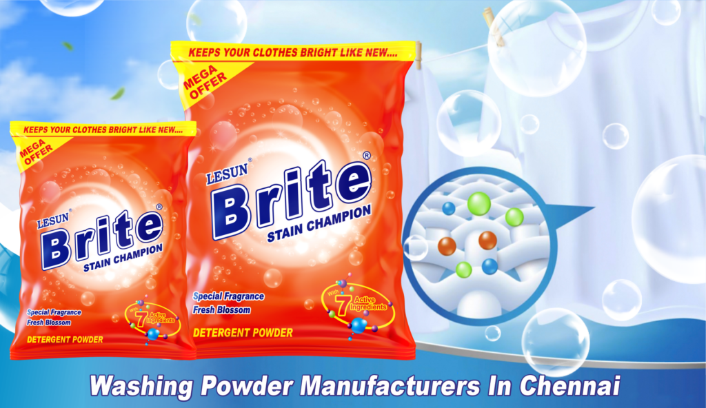 Lesun Soaps is Best Quality Washing Powder Manufacturers in Chennai, Tamil Nadu, in India, Brite Washing powder with its next-generation Superzymes Technology, Brite provides Smart Care & Enduring Freshness for your clothes. It is now formulated with a unique blend of detergent, enzymes & other actives that help remove complex stains quickly. It makes clothes remarkably clean while keeping their vibrancy intact. It also gives a long-lasting refreshing fragrance, post-wash. It can be used effectively in both bucket-wash & machine-wash configurations.